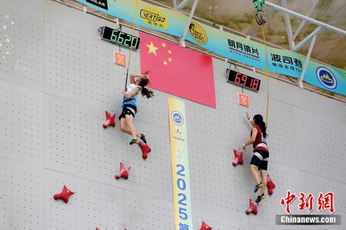 中新网北京4月8日电 据活动主办方消息,4月5日至7日,2025第三届全国攀岩冠军赛暨第十五届全国运动会攀岩项目资格赛在中国(全南)攀岩小镇攀岩基地举办,来自全国22个省市代表队的145名运动员参加两项赛事的男女子两项全能和速度四个项目的比拼。