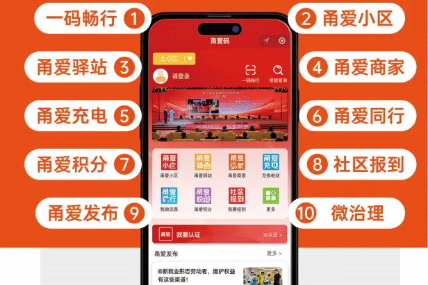 “甬爱码”汇集一码畅通、甬爱小区、甬爱驿站、甬爱商家、甬爱充电、甬爱同行、甬爱积分、社区报到、甬爱发布、微治理等10大应用,一键解锁新就业群体“幸福密钥”。