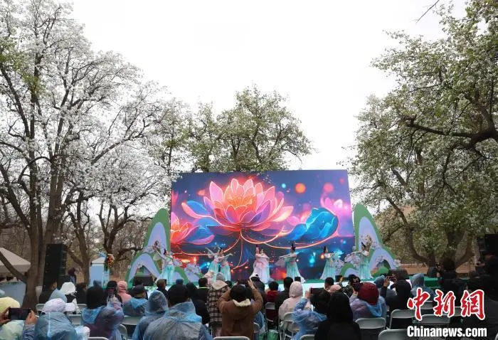 图为游客在梨园打卡拍照。中新社记者 于晶 摄
