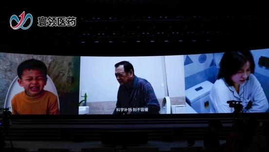 当科技创新与人文关怀相遇,便迸发出照亮未来的光芒。随后,一段充满温情与希望的启动视频在大屏幕上缓缓播放,将寰领医药对公益的承诺与行动具象化地展现在了大家面前。中国妇女杂志社相关领导、浙江寰领医药科技有限公司董事长周彦军先生、一心堂药业集团股份有限公司董事长阮鸿献先生、益丰大药房股份连锁有限公司董事长高毅先生、漱玉平民大药房连锁股份有限公司董事长李文杰先生、健之佳医药连锁集团股份有限公司董事长蓝波先生、高济健康CEO龚建军先生、河南张仲景大药房股份有限公司总经理杨明江先生、山东立健药店连锁有限公司董事长张立俊先生、浙江寰领医药科技有限公司副总经理陶勇先生共同登台,在全场观众的共同倒数声中,按下启动键,标志着“创新钙营养 守护骨健康——寰领医药·金贝钙2025品牌公益行动”正式启航。