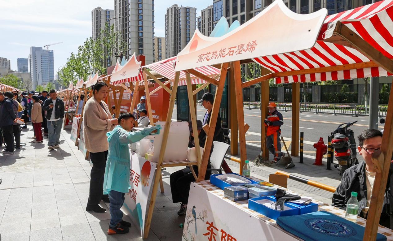 此次共富市集紧扣综合体服务特点,集健康、养生、娱乐于一体,室内区域“春锤悦络”“沙包大作战”“扇缘缤纷” 等互动活动吸引了大批居民踊跃参与,参与者在享受游戏乐趣的同时,也获得了身心愉悦的体验。