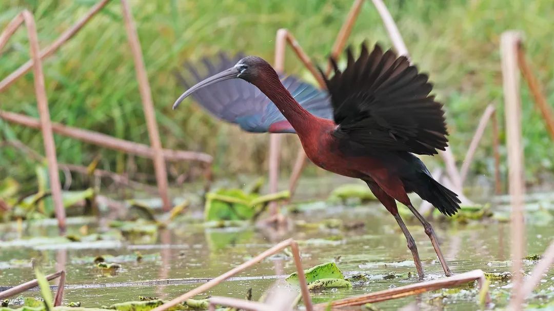 “国宝”彩鹮惊现余姚河姆渡。“打鸟”爱好者 陈丰/摄
