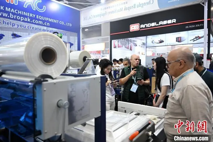 华联机械集团有限公司(以下简称“华联机械”)销售副总监黄昌土表示,该公司的立式喷码抽充气一体连续封口机产品深受境外采购商青睐,目前生产订单已经排期至2025年6月,“我们的海外销售额大约占公司销售额的60%。这几天已有巴西、印度的客户来到展位和我们签下了订单”。
