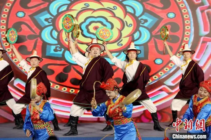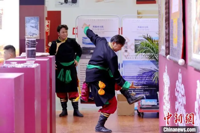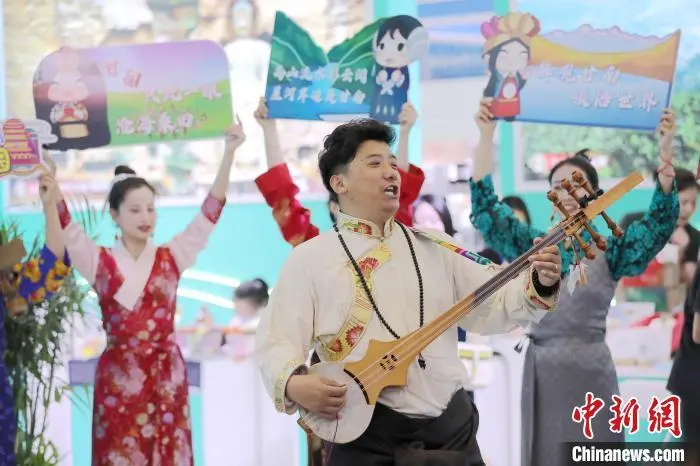 4月18日,陕西西安,2025西安丝绸之路国际旅游博览会开幕。本届旅博会以“促进文旅消费 激发产业活力”为主题,吸引了来自25个国家和地区的参展商参展参会。图为甘南展位上演歌舞表演。中新社记者 张远 摄