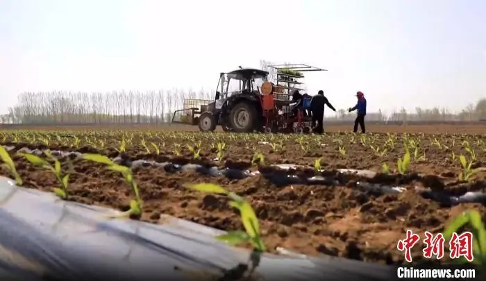 中新网济南4月21日电 (记者 孙婷婷)“今年,我们摒弃鲜食玉米传统的点播种植模式,采用‘插秧’式移栽育苗技术进行种植,缩短了玉米生长天数。”21日,走进淄博市桓台县马桥镇东圈村启润农业专业合作社的农田,负责人孙城说,合作社采用“工厂化育苗+机械化移栽”模式,直接将生长了约20天的秧苗移栽至田间,缩短生长天数,让一年两季玉米种植成为可能。