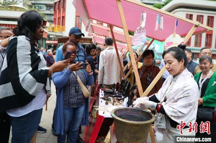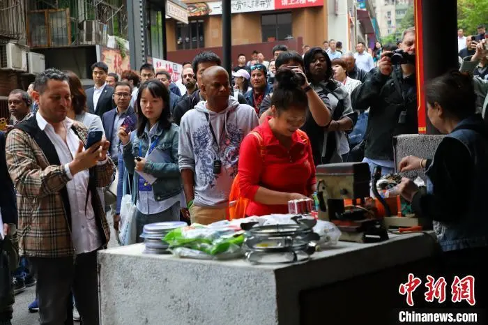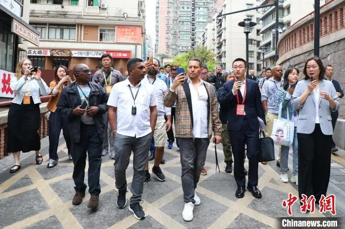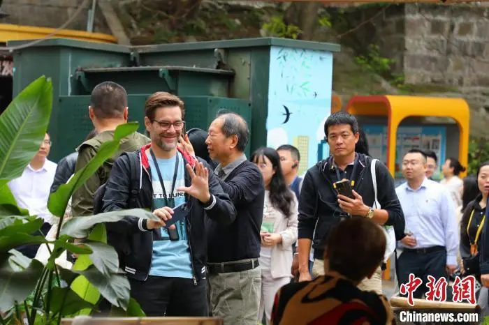 4月22日,多家外国媒体记者走进重庆九龙坡区民主村社区,了解中国式现代化在重庆的生动实践。在走访期间,外国媒体记者参观了惠民巧匠坊、民情坝坝茶、民主村社区党群服务中心等地,全方位感受当地村民的幸福生活。图为外国媒体记者在民主村社区参观。梁钦卿 摄