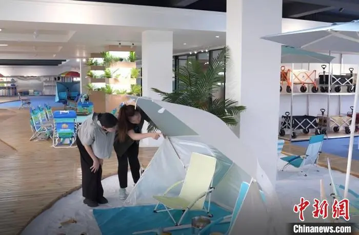 庭院伞、沙滩伞、露营帐篷……近日,在浙江省绍兴市上虞区崧厦街道,一家有30年广交会参展经验的伞企准备了上百款户外用品,希望在今年展会上寻找新的海外商机。