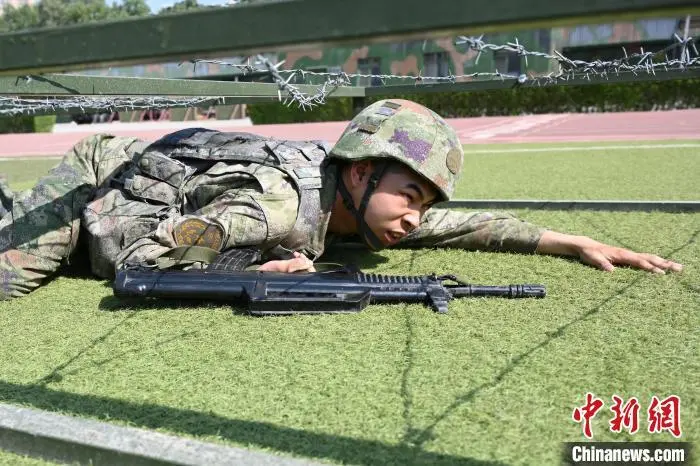 近日,陕西西安,空军工程大学信息与导航学院举办以“志链空天,向战冲锋”为主题的第34届军事体育运动会。百余名官兵同台竞技,围绕班战术接力、手榴弹投掷、团结向前等30余个军事项目、体育项目和趣味项目展开。图为军事体育运动会班战术组合项目中,参赛者穿越刺网。 刘家佳 摄