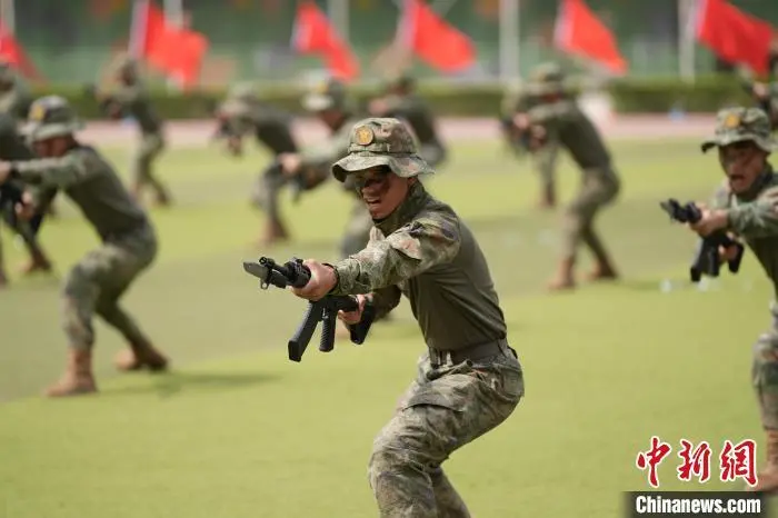 图为军事体育运动会开幕式上的百人刺杀操。 杨宇航 摄
