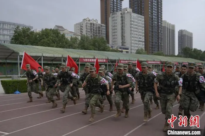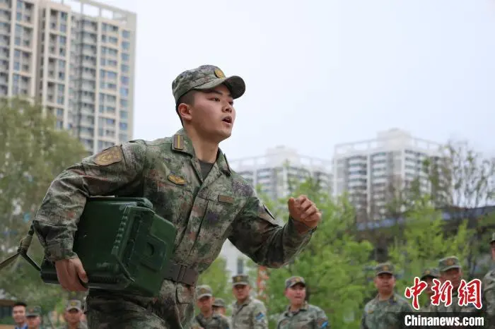 图为武装三公里项目中,参赛运动员精神饱满。 杨宇航 摄