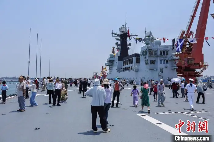 4月24日,海南澄迈马村港,民众登海南舰参观。中新社记者 骆云飞 摄