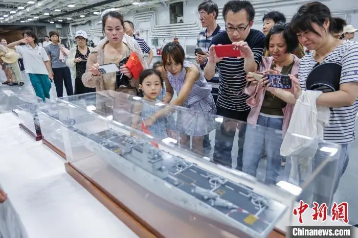 4月24日,海南澄迈马村港,海南舰内展出的船只模型吸引民众参观。中新社记者 骆云飞 摄