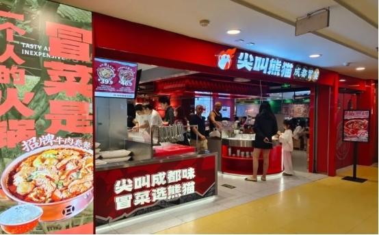 尖叫熊猫实现破圈并非偶然,而是其三大核心竞争优势叠加的结果。其一为品类创新,尖叫熊猫将川渝火锅的麻辣特色转化为冒菜形式,有效突破了地域限制,扩大了受众范围;其二为模式创新,采用双店型加盟策略,精准覆盖不同消费场景,既能满足商场消费者对品质的追求,又能抓住社区外卖的流量红利;其三为组织创新,凭借 20 年的供应链积累与数字化运营能力,为品牌的快速扩张奠定了坚实基础。
