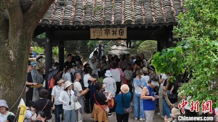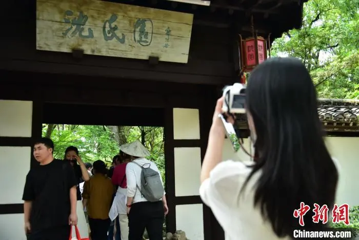 5月3日,沈园吸引游客。今年“五一”假期,位于浙江绍兴的沈园吸引游客打卡。沈园是南宋时期沈姓富商的私家花园,公元1151年春天,诗人陆游与结发妻子唐琬重逢于此,留下千古绝唱《钗头凤》。中新社记者 项菁 摄