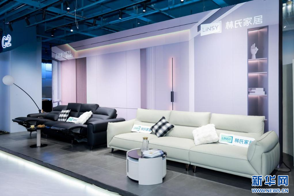 现场展出的林氏家居“舒适区系列”新品。新华网 伍嘉炜 摄