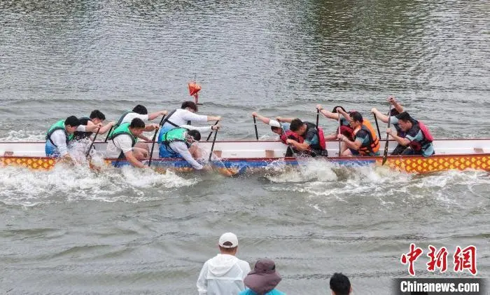 中新网嘉兴5月28日电(黄彦君 韩菁媛)“各队注意,预备!比赛开始!”5月28日上午,随着裁判一声令下,在浙江省平湖市新仓镇杉青港村水域的河道里,一场“龙舟斗牛赛”激烈开幕。
