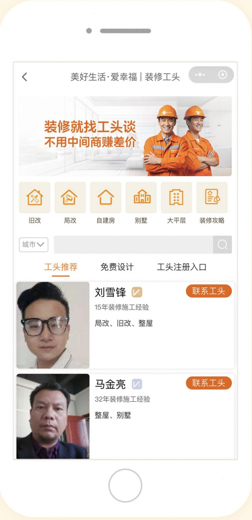 传统装修行业因层层转包、增项收费、售后推诿等问题饱受诟病。爱幸福平台创新推出的“工头直连”服务,平台不抽成、不溢价,签约价即成交价,从根本上重构服务链条。通过全国甄选的10000+认证工头,平台实现“业主-工头”点对点对接,彻底消除中间差价,让消费更合理、更公平、更透明。