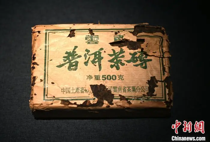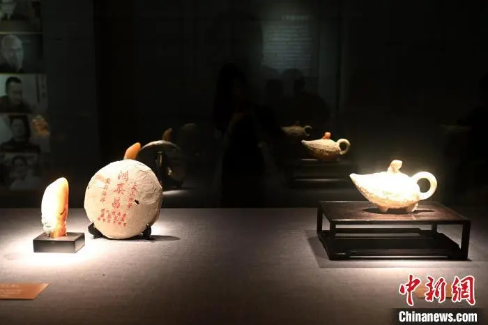 5月29日,石韵茶香——石雕艺术与茶文化联展在福州东方石艺城开幕。图为展出的云南普洱茶砖。中新社记者 吕明 摄