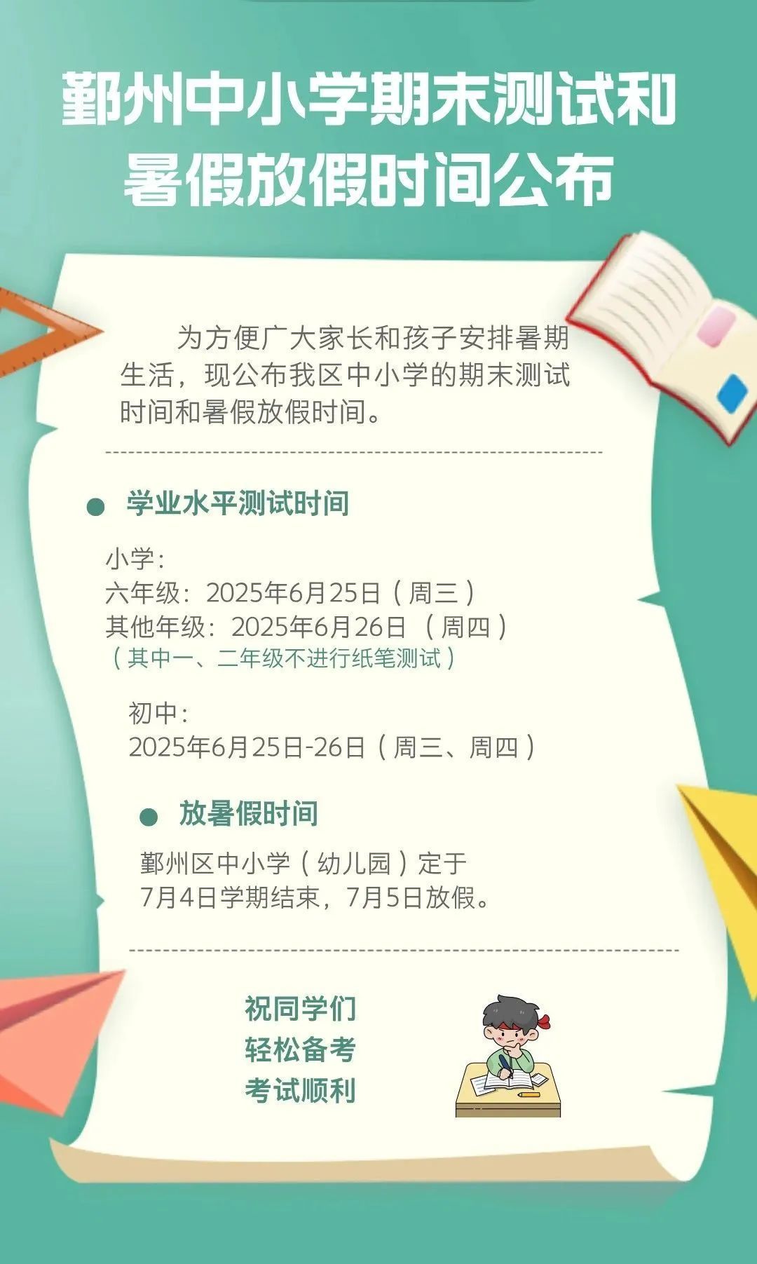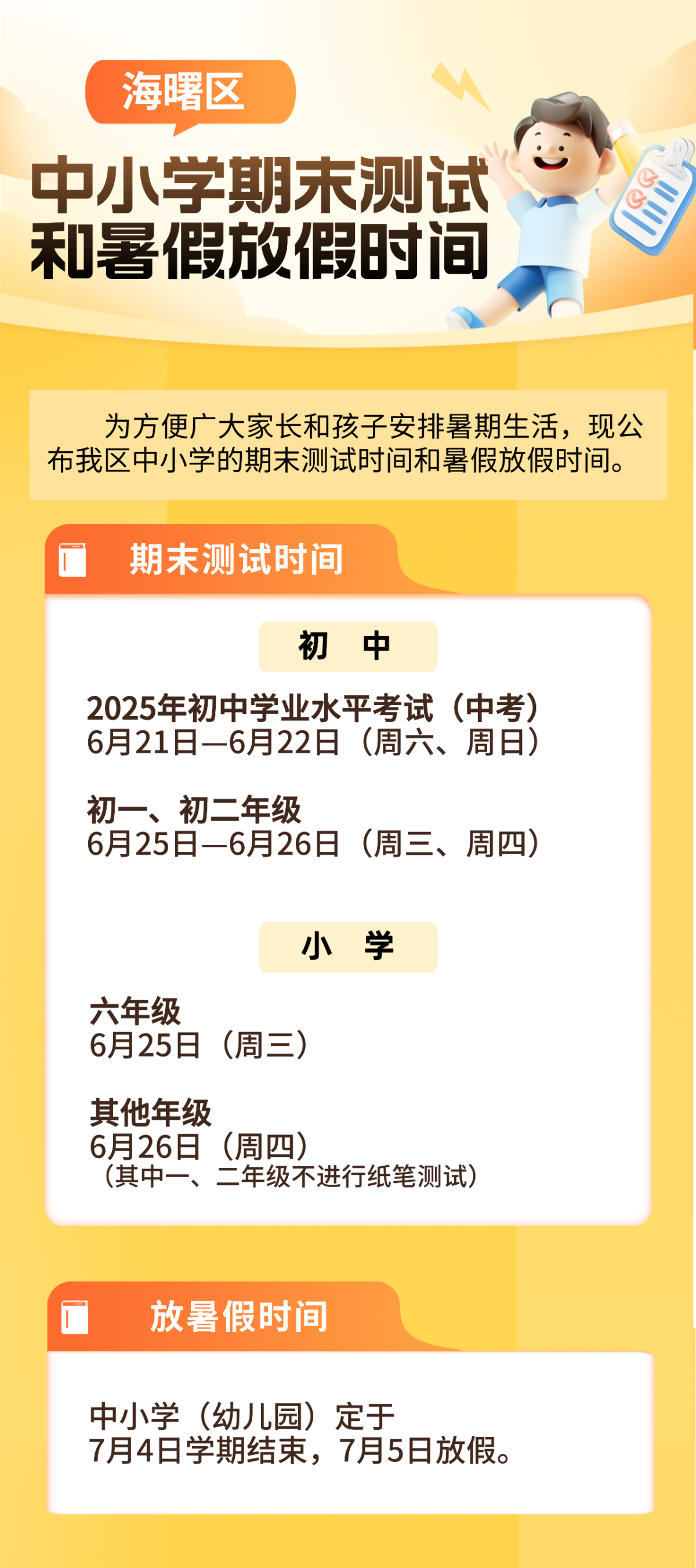当下,家长和学生最关心的就是什么时候期末考试?暑假什么时候开始?
