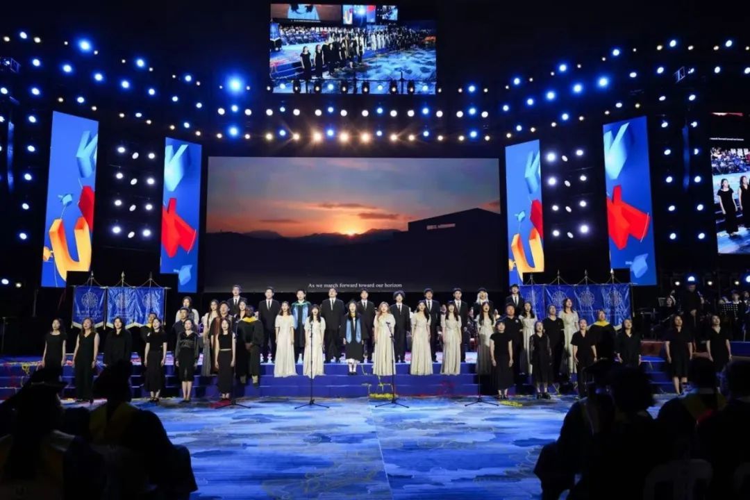 毕业典礼在教职工与学生合唱团演唱的《世界赠予我的》及校歌中落下帷幕。彩带纷飞,乐声悠扬,毕业生们在权杖引领下有序退场。正如王北铰理事长在闭幕词中所说:“母校永远为你们点一盏灯,等你们归来。愿你们心中常存热爱,脚下自有力量。”