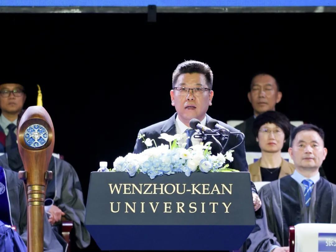 Mr. Zhang Wenjie, Mayor of Wenzhou, lavished praise on Wenzhou-Kean University, hailing it as a remarkable academic institution, whose establishment was witnessed by President Xi. Over the years, it has cultivated many outstanding students who have broadened their horizons and increased their wisdom under the influence of diverse cultures. Marking the first anniversary of President Xi’s reply to WKU and as graduates prepare to embark on new journeys, Mayor Zhang outlined three key expectations for the outgoing class. Stay anchored in the original purpose, cultivate multi-dimensional wisdom, and prioritize physical and mental fortitude.