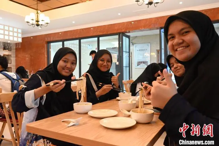 图为马来西亚学子品尝柳州螺蛳粉。中新社记者 林馨 摄