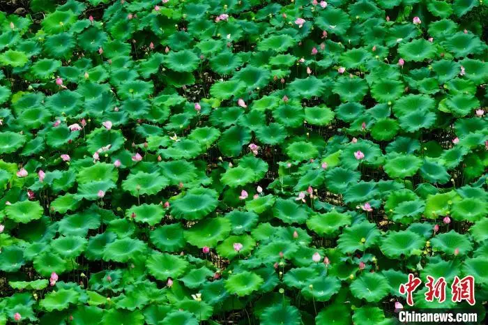 6月17日,金山公园里盛开的荷花。(无人机照片)中新社记者 王东明 摄