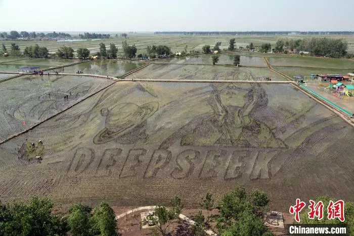 “稻梦空间”观光农田的“DEEPSEEK”田野图案吸引游客关注。中新网记者 孙自法 摄