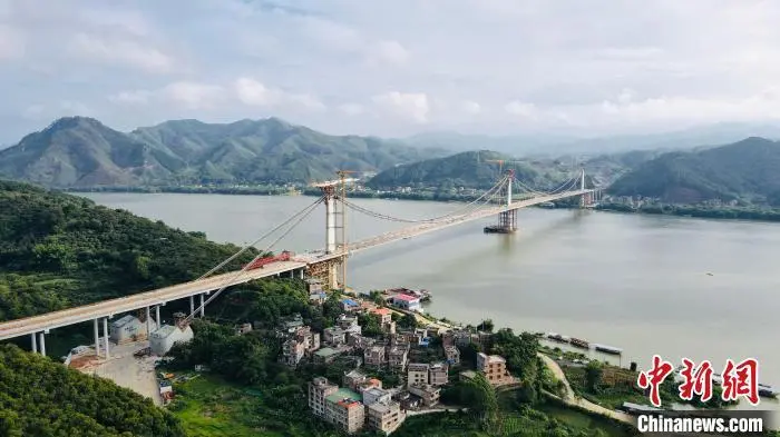 中新网梧州6月17日电(申学康 罗发彬)6月17日,由广西交通投资集团投资、中交二航局承建的苍梧至容县高速公路(以下简称苍容高速)苍容浔江大桥钢箱梁环缝焊接全部完成,标志着大桥即将步入桥面铺装准备阶段。