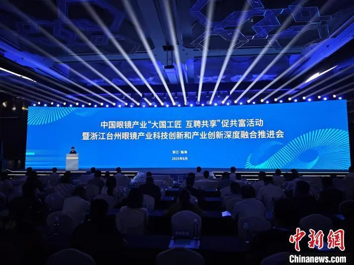 6月20日,中国眼镜产业“大国工匠 互聘共享”促共富活动暨浙江台州眼镜产业科技创新和产业创新深度融合推进会在临海市举行。傅飞扬 摄
