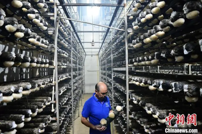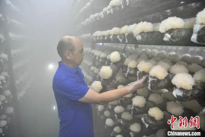 6月26日,在古田县一家食用菌生产企业的无公害银耳基地内,工人在查看银耳长势。福建省宁德市的古田县,是目前中国开发品种较齐全的食用菌生产基地,这里已驯化开发生产了猴头菇、金针菇、茶树菇等30多个食用菌栽培品种,素有“中国食用菌之都”美誉。近年来,当地加大工厂化栽培力度,逐步形成“菌棒生产、食用菌培植、产品精深加工、线上+线下销售”等一体化的全产业链,食用菌产业已经成为当地的支柱产业。中新社记者 张斌 摄