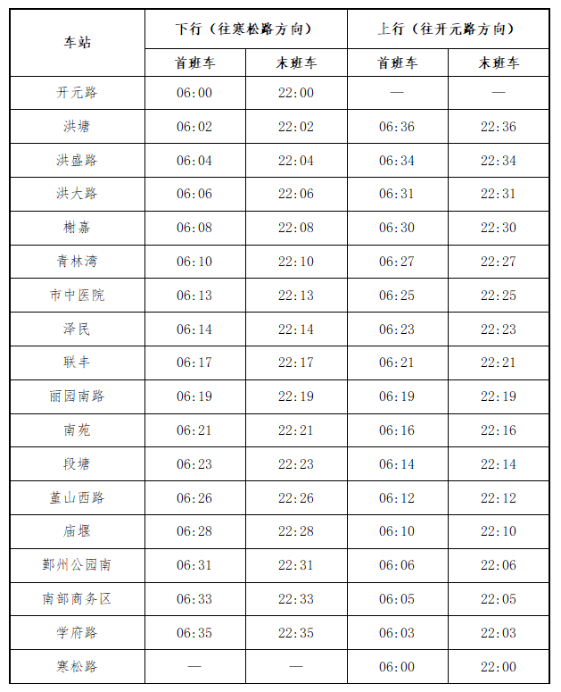 开元路站、寒松路站为8号线两端始发站。两端首班车发车时间为6:00,末班车发车时间为22:00,全程约38分钟。开通初期,行车间隔为高峰期6分钟、平峰期8分钟,低峰期10分钟。