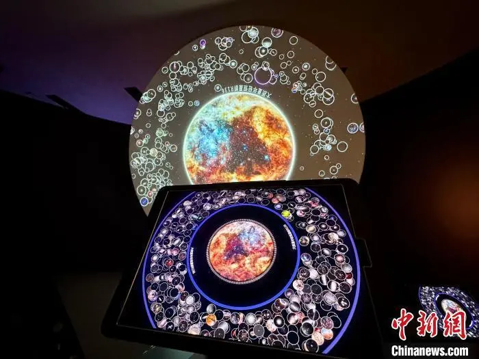 图为瑞士洛桑联邦理工学院实验博物馆学实验室的宇宙碰撞交互界面作品。萧子恒 摄