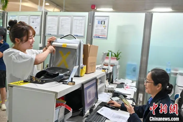 7月3日,旅客在广州南站中铁快运营业部办理高铁宠物托运手续。中新社记者 陈骥旻 摄