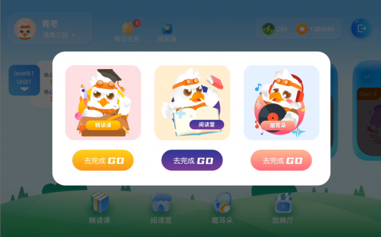 英文分级阅读面向3-18岁,以剑桥英语体系结合新课标,设236级梯度。通过定级测试精准匹配学习级别,定制专属计划。每日精读课实时评分纠音,阅读营拓展绘本,还有磨耳朵、动画放映等趣味形式。另有跟读奖励机制,零基础坚持6年可达高中英语水平。
