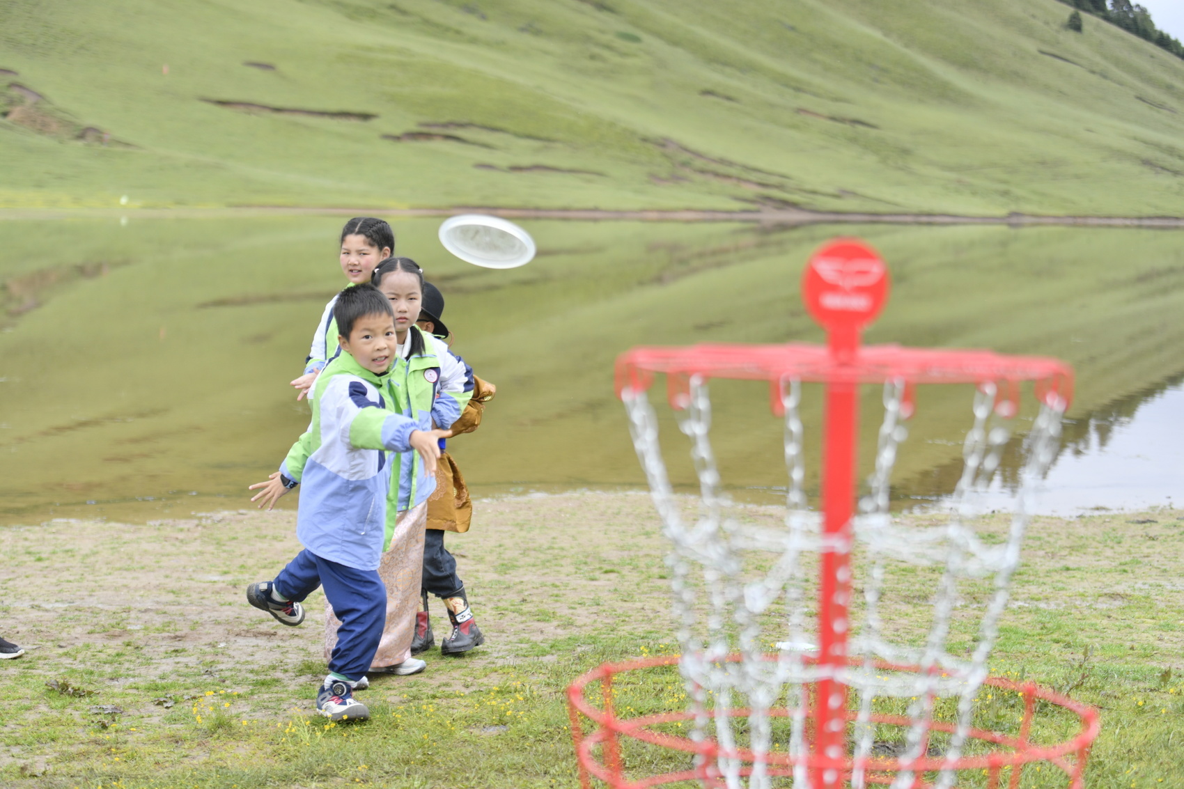 在这片素有“高原明珠”美誉的湖畔,格桑花如约绽放,雪山的圣洁、草甸的青翠与湖泊的湛蓝,共同描绘出夏季高原独有的绚烂色彩。而飞盘高尔夫这项老少皆宜的休闲运动,融合了飞盘运动的轻松活力与高尔夫的策略技巧,2025年,成都世界运动会将其列为正式比赛项目。一时间,竞技之美与天地之灵秀在此交相辉映,让静谧的高原再次热闹了起来。