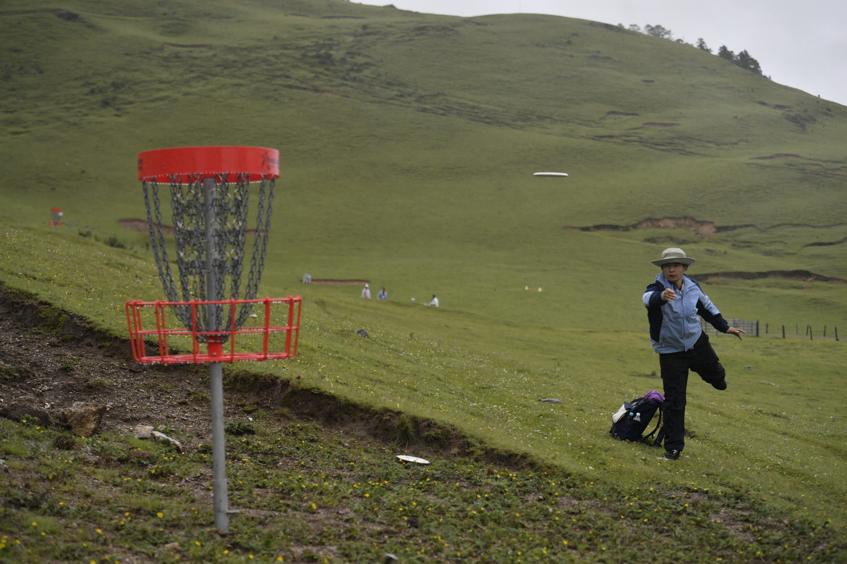 7月5日,2025“鄞木山海”杯飞盘高尔夫公开赛,在海拔3685米的木里县香格里拉湖畔中国最高海拔飞盘公园18洞专业赛场开赛。