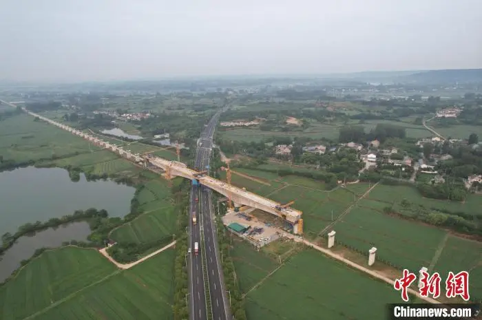 中新网南京7月15日电 (任海霞 徐珊珊)据中国铁路上海局集团有限公司15日消息,当天4时50分,在宁淮城际铁路南京市六合区建设现场,最后一方混凝土精准浇筑入模,标志着宁淮城际铁路跨S353省道128米连续梁顺利合龙,项目建设取得突破性进展。
