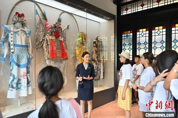 7月15日,首届穗港澳青少年粤剧文化夏令营在广州开营。图为青少年在粤剧艺术博物馆参观。 中新社记者 陈楚红 摄
