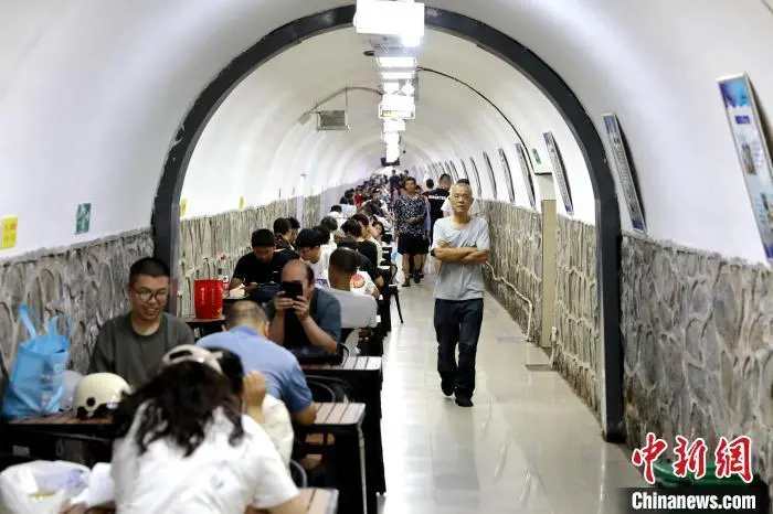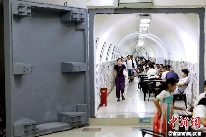 7月15日,陕西西安,市民在防空洞内纳凉。当日,西安市气象台继续发布高温红色预警信号,西安市区及周边多个区县最高气温将升至40至42℃,局地可达42℃以上。中新社记者 张远 摄