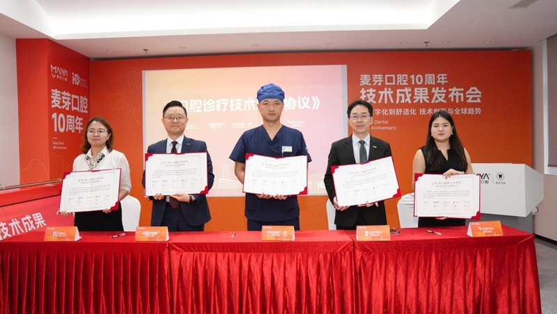 发布会上,麦芽口腔同时宣布成立分层舒适化诊疗中心,并发布"舒适化种植十项金标准"。此外,麦芽口腔还与登士柏西诺德、奥齿泰、时代天使、诺保科等国际知名齿科供应商签署“口腔诊疗技术联盟协议”,以加快推动国际前沿口腔技术在本土落地。