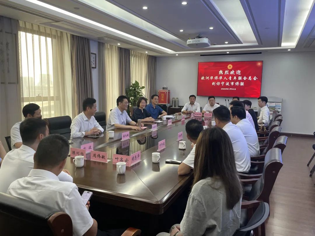 7月15日上午,欧洲华侨华人青年联合总会主席周彦君率斯洛伐克、西班牙、波兰、法国、德国、荷兰、克罗地亚等欧洲7国青年联合会代表到访宁波市侨联。市侨联党组书记、主席任建成,党组成员、副主席鲁爱丽,兼职副主席、欧洲华商会会长傅旭敏与访问团一行座谈交流。