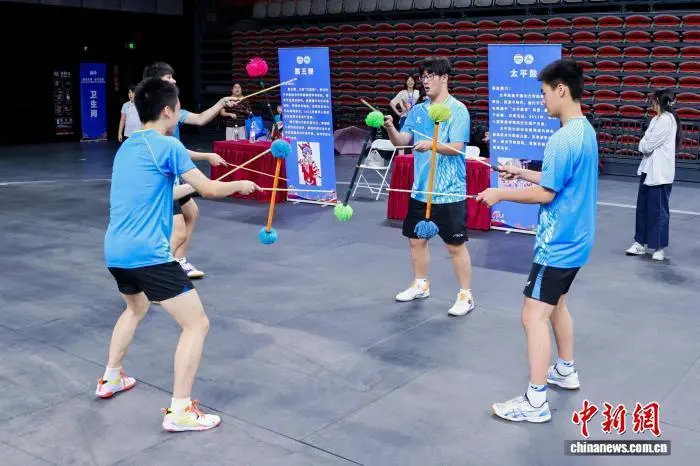图为两岸青年体验中华传统体育项目。(主办方供图)