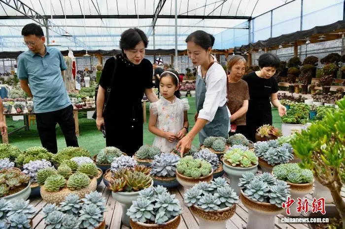 图为7月19日,游客在周宁多肉种植园大棚内参观。中新社记者 王东明 摄