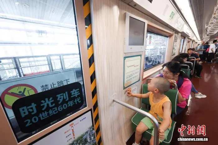 7月22日,随着暑期来临,北京文旅消费活力持续攀升,北京地铁在1号线重新上线“时光列车”。 中新社记者 贾天勇 摄