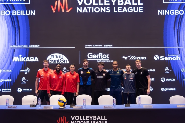 波兰、意大利、古巴、巴西、法国、日本和斯洛文尼亚队代表队员以及中国队主教练维塔尔·海宁、中国男排队员王鹤斌参加本次发布会。