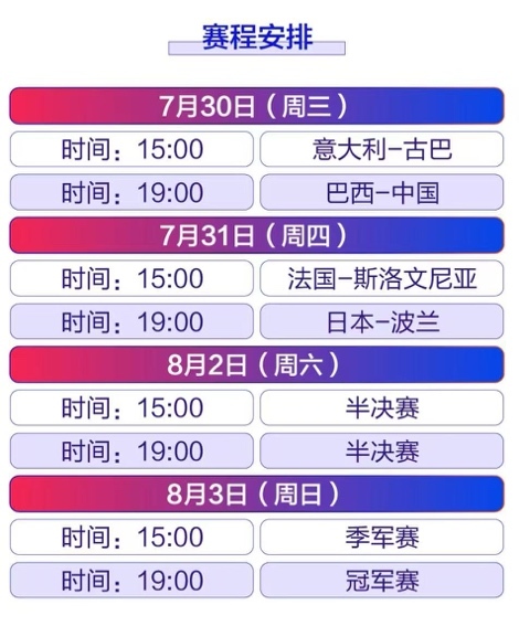 据悉,7月30至8月3日,2025世界排球联赛男排总决赛将在宁波北仑打响。中国男排将于7月30日晚上7点,与劲旅巴西男排展开四分之一决赛的争夺,胜者将获得总决赛四强资格。