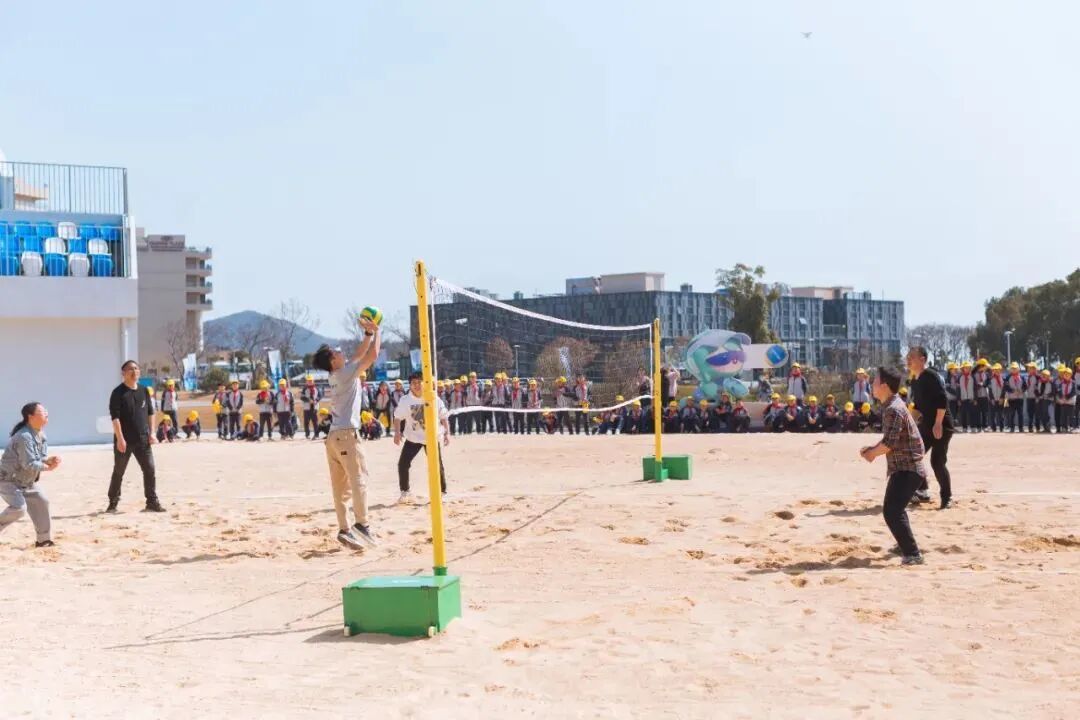 脚踩细软沙滩,走进杭州亚运会沙滩排球比赛场馆,感受国际级赛事的氛围。参观沙排馆的内部构造、设施设备、房间功能,了解国际级赛事的运转、人员配置等。并在专业场地体验沙滩排球的独特魅力,挥洒汗水,释放活力,亲身体验亚运精神,留下激情澎湃的运动记忆。
