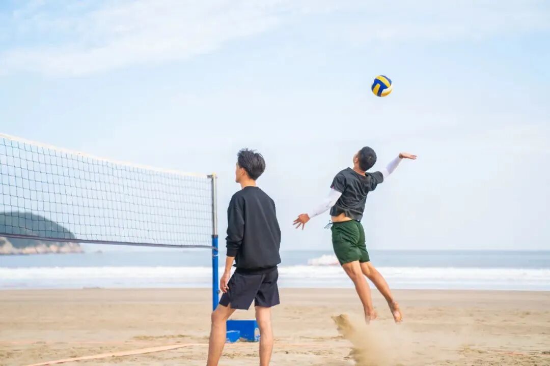 海边烈日下,平坦的沙滩上,简简单单一张网两根杆,健壮的小伙黝黑的姑娘,洋溢着青春、健康、活力与阳光...
