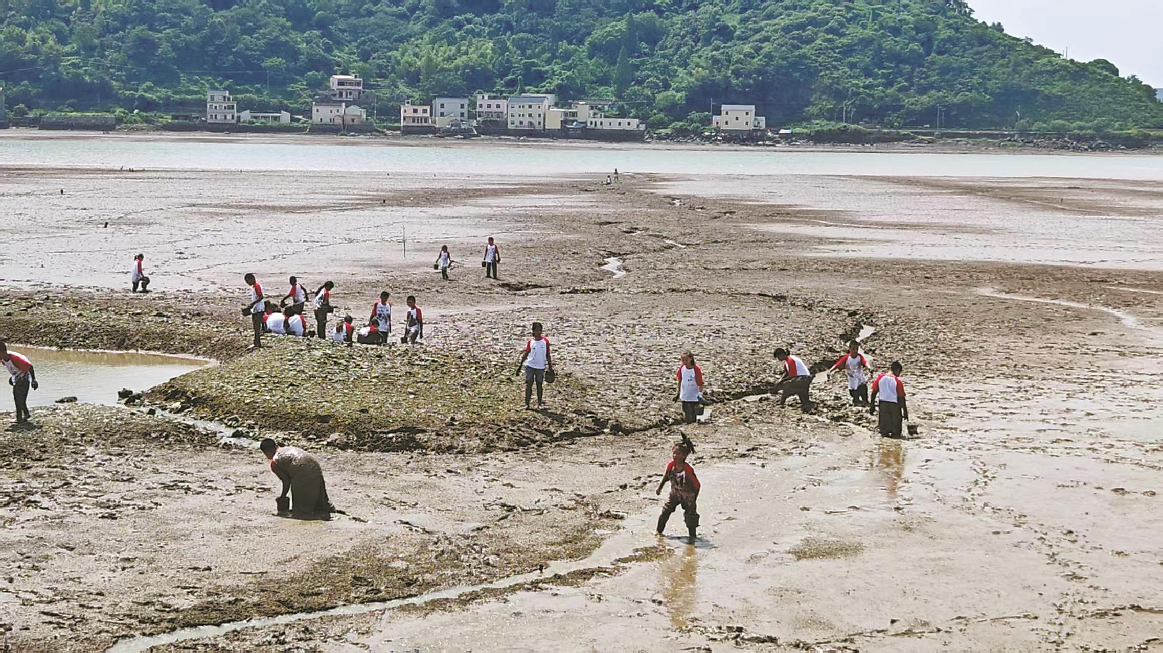 上午,库车“看海”研学团的孩子们来到象山茅洋乡花墙村的海花里滩玩中心,戴上袜子、手套,提着小水桶,在滩涂上撒欢,一个个很快都成了开心的“泥人”,很多小朋友还收获颇丰。